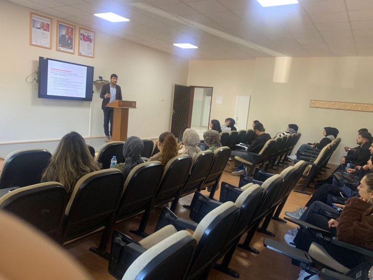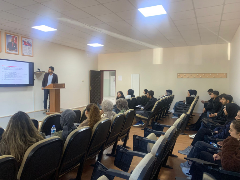 As part of the Children’s Rights and Law course, a seminar was delivered by Attorney Furkan Demirci from the Provincial Directorate of Family and Social Services to first-year students of the Classroom Teaching Department.